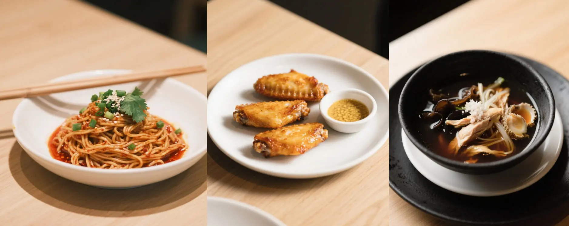 彈牙麺條搭配秘制香辣醬汁的香辣捞麵,外皮金黄酥脆,內裡肉質嫩滑的雞翼,經典的港式街頭小食的碗仔翅。